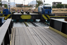 parkeerterrein, vlak naast de brug (N 37° 55.700 E 022°
