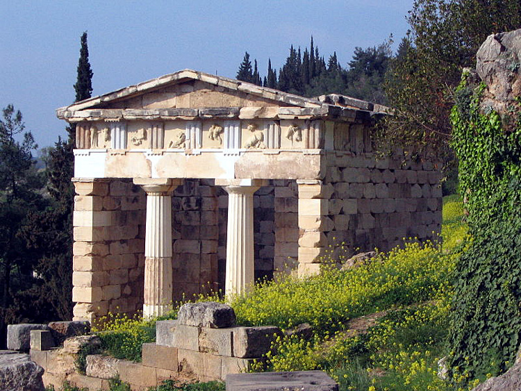 van Siphnos (ca. 525 v.Chr., in fraaie Ionische stijl) en Athene