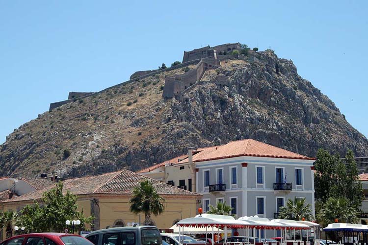 rots waarop het Palamidi-kasteel staat. Dicht bij de haven ligt