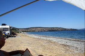 Na Gythio rijden we door naar Kamares, een lang kiezelstrand