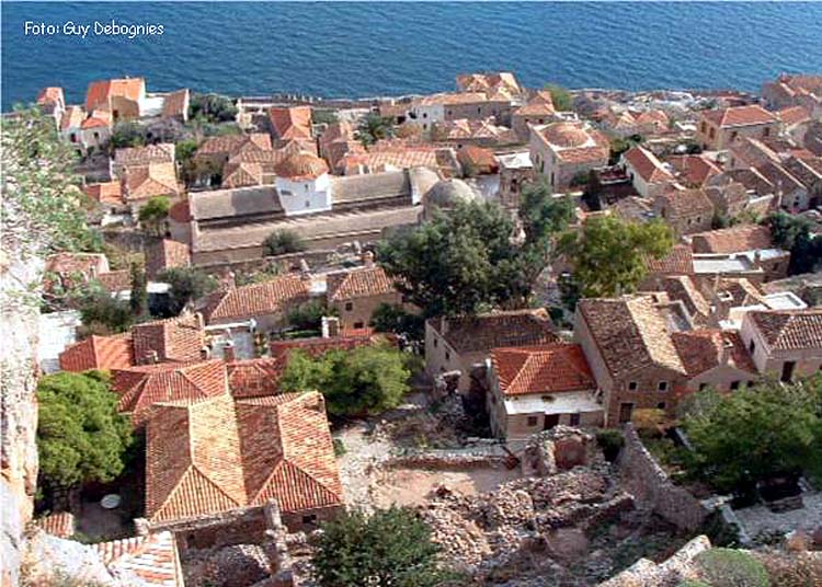 een complete stad bevindt. Monemvasia is opgedeeld in een beneden-