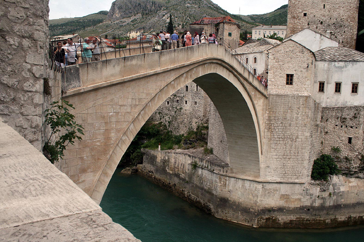 brug en de Neretva liggen in het moslimdeel van de stad. Ten