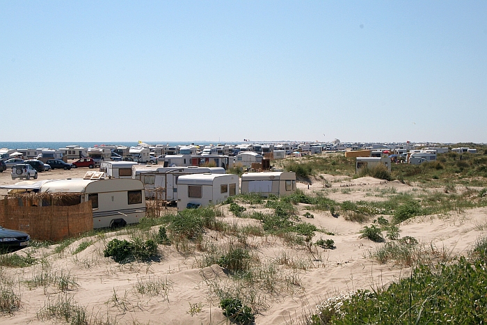 en hele zandheuvels zijn rond caravans opgewaaid. (N 43°