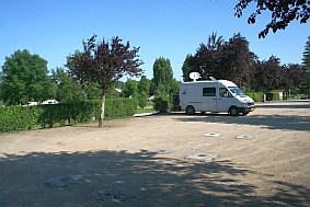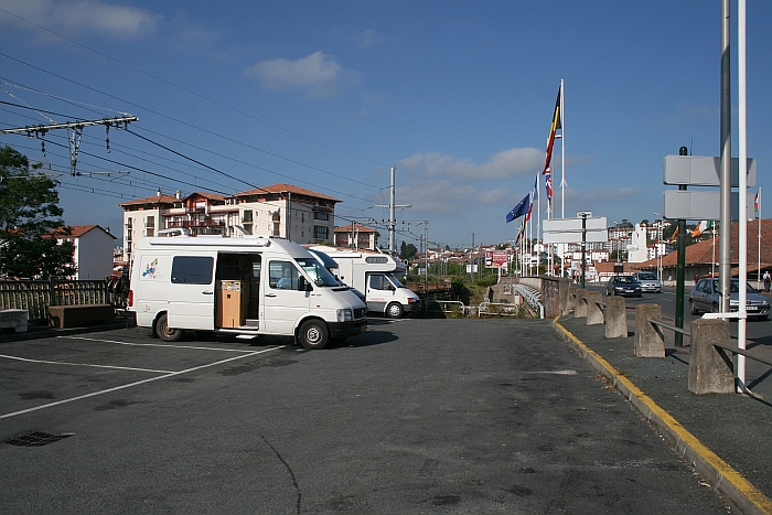 Frankrijk. Daar overnachten we op de gemeentelijke camperplaats,
